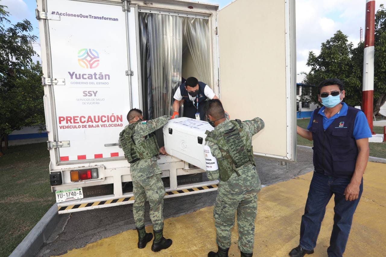 Compartir De igual forma se aplicarán segundas dosis a adolescentes de 15 a 17 años en municipios que se darán a conocer en breve Mérida, Yucatán, 27 de diciembre de 2021.- Un nuevo cargamento con 72,440 vacunas contra el Coronavirus de las farmacéuticas AstraZeneca y Pfizer llegaron a Yucatán este lunes, para iniciar con la aplicación de la dosis de refuerzo al personal de salud del estado de primera y segunda línea de atención, así como para segundas dosis a adolescentes de 15 a 17 años de municipios que se darán a conocer en los próximos días. La Secretaría de Salud de Yucatán (SSY) detalló que en breve se darán a conocer los módulos de vacunación que se habilitarán para la administración de las 35,000 dosis de AstraZeneca y las 37,440 vacunas de Pfizer que arribaron al territorio, por lo que invitó a la población en estos rangos de edad a estar atenta a la información que se brindará por los canales oficiales. Por instrucciones del Gobernador Mauricio Vila Dosal, el director de Prevención y Protección de la Salud de la SSY, Isaac Hernández Fuentes, acudió a la Base Aérea Militar (BAM) número 8 para supervisar el arribo de este nuevo lote, a bordo de una aeronave C27J Spartan de la Fuerza Aérea Mexicana matrícula 3205 proveniente de la Ciudad de México, que tocó territorio estatal a las 4:07 de esta tarde. Acompañado del coordinador estatal de Vacunación, capitán de Corbeta Carlos Gómez Montes de Oca, Hernández Fuentes constató la descarga de las vacunas e insumos, a cargo del personal del Ejército, las cuales se colocaron en un camión thermoking de la dependencia, para luego trasladarlas al almacén estatal, desde donde se distribuirán hacia los lugares para aplicarlas. Hasta el día de hoy, han llegado al estado más de 3 millones 184,939 vacunas contra el Coronavirus, a las cuales se suma el lote de 72,440 que recibió esta tarde la SSY. Cabe reiterar que las vacunas serán aplicadas a la población que ha sido previamente registrada y seleccionada por medio de las plataformas del Gobierno federal, por lo que la Federación tiene a su cargo la planificación y los protocolos de esta vacunación y el Gobierno estatal estará apoyando con estas tareas. En el arribo del nuevo lote de vacunas, también estuvieron presentes el Teniente Coronel de Infantería Javier Ojeda Beltrán, así como el Teniente Coronel Piloto Aviador Marco Durán García, comandante Accidental de la BAM 8. Navegación de entradas Continúan los trabajos de rehabilitación en 10 kilómetros del Anillo Periférico de Mérida El Gobierno del Estado anuncia nuevos nombramientos en su estructura administrativa