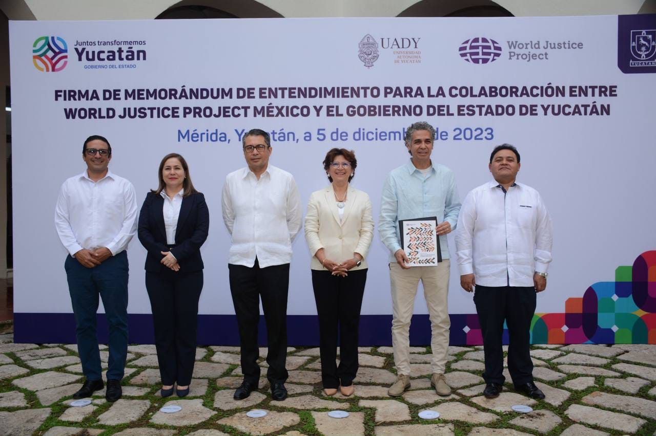 Mérida, Yucatán, 5 de diciembre de 2023.- Se da un paso más en la construcción de un Yucatán más justo y equitativo para todos los yucatecos al realizar la firma de convenio el Gobierno del Estado con World Justice Project, reconocida organización internacional que trabaja para avanzar en el Estado de Derecho en el mundo, como parte de las acciones que impulsa el Gobernador Mauricio Vila Dosal para aplicar una justicia transparente, la rendición de cuentas y la lucha contra la corrupción.