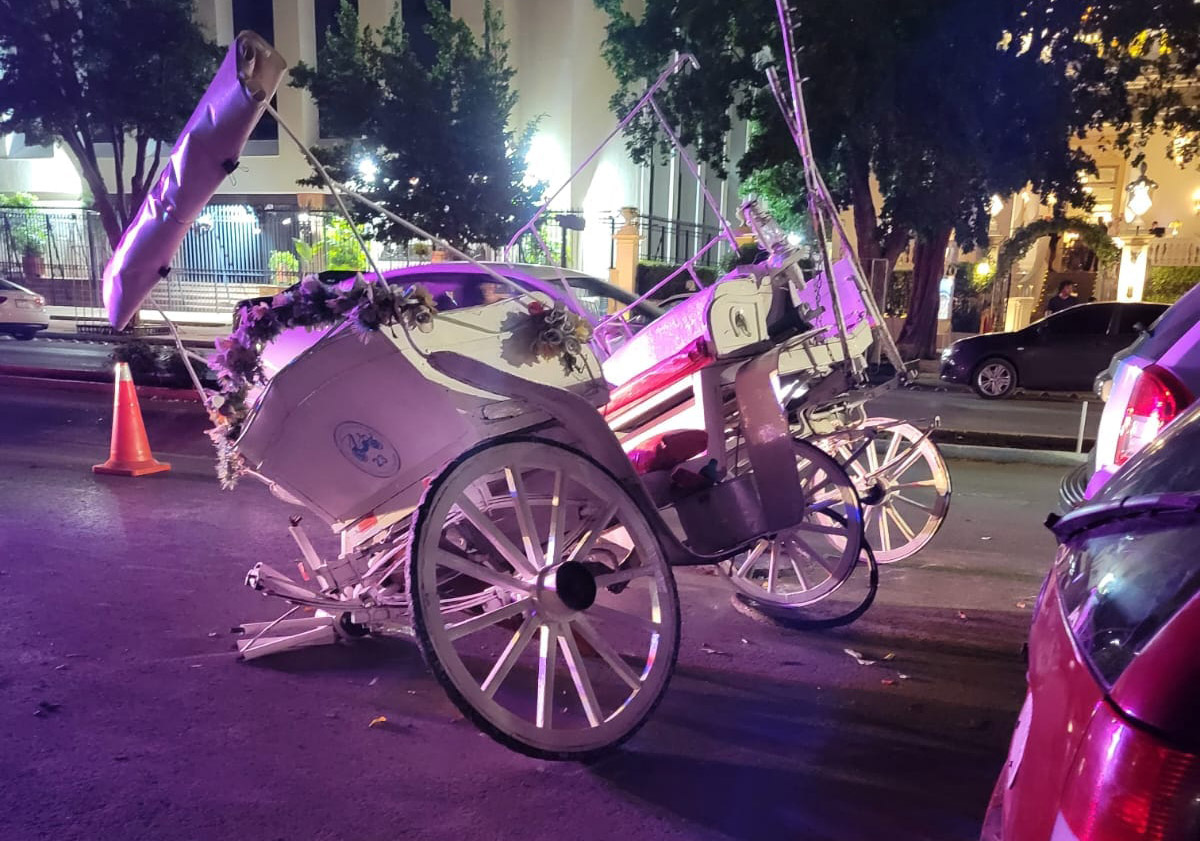 Compartir Ayer jueves por la noche tremendo susto se llevaron turistas y jinete que estaban abordó de una calesa cuando paseaban por el Paseo de Montejo, de pronto una camioneta los iimpactó por la parte delantera del lado derecho en la rueda de madera, provocando que el caballo se altere y se desestabilice pero pronto fue tranquilizado. No se reportan heridos, cabe recordar que en la vía la velocidad máxima es de 40km por hora. Un testigo escribió esto en redes : «Como Ven, la pata del caballo no la apoya. Quien choca una calesa y la deja así?? En una zona de 20km/hr?» El tema de las calesas tirada por caballos aún está en el aire con diversas opiniones de los yucatecos. Navegación de entradas Detienen en Mérida a presunto homicida buscado en Iztapalapa Choca mototaxi con un poste y fallece pasajera.