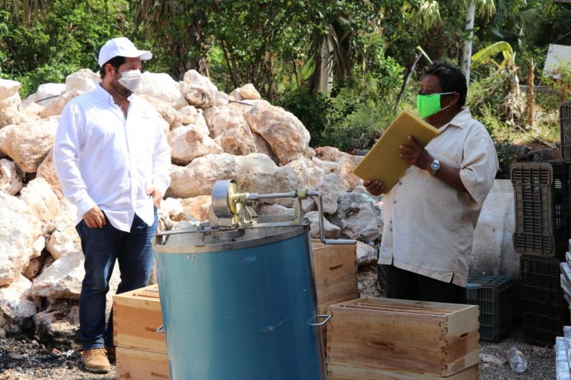 Compartir Con apego a las medidas sanitarias, la Seder inició la distribución casa por casa de los apoyos del Prodeter. Oxkutzcab, Yucatán, 29 de abril de 2020.- Agradezco, sin duda, al Gobernador Mauricio Vila Dosal por los apoyos que están llegando a tiempo, ya que con mis nuevas cajas para abejas, cera y mi extractor de acero inoxidable, ahora estoy listo para la cosecha y colocar nuevas colmenas, señaló don Marcelino Estrella Estrella luego de recibir los insumos de manos del titular de la Secretaría de Desarrollo Rural (Seder), Jorge Díaz Loeza. Desde la comunidad de «Emiliano Zapata», y con estricto apego a los protocolos de salud, la dependencia inició la entrega de equipo y material del proyecto de «Apicultura», con el que beneficiará un total de 435 productoras y productores de los municipios de Tixcacalcupul, Oxkutzcab y Tizimín, como parte del Programa de Desarrollo Territorial (Prodeter). Don Marcelino, quien lleva hace 40 años en esta actividad, afirmó que el apoyo llego a su familia en el mejor momento, pues en los próximos días saldría al campo junto a sus hijos y dos trabajadores para la cosecha del dulce, además que con las nuevas cajas, un total de 50 con sus fondos, tapas y cuadros, comenzará a hacer sus divisiones, con lo que incrementará sus colmenas. «Agradezco al Gobernador que haya puesto los ojos en la comunidad, sobre todo en estos momentos que estamos pasando por la contingencia, por lo que estoy muy contento haber recibido el apoyo, el cual también incluye un extractor para la miel», platicó. Estos insumos y materiales fueron repartidos casa por casa por el titular de la Seder, acompañado del alcalde Oxkutzcab, Raúl Romero Chel. En el recorrido, explicó que gracias al esfuerzo económico tanto del Gobierno del Estado, de la Federación y de los propios productores, hoy el Prodeter arranca con la entrega de estos beneficios para quienes trabajan muy fuerte el campo. «Es necesario tomar las medidas de prevención y cuidado, pero sin descuidar la continuidad en el trabajo y gestión de los apoyos, pues el campo no se detiene y se continúa generando y fortaleciendo las actividades primarias del estado», reiteró el funcionario estatal. Explicó que los proyectos apícolas solicitaron extractores de acero inoxidable, bancos desoperculadores, cajas, tapas, fondos, cuadros, cera estampada, guantes, velos, ahumadores y cuchillos, entre otros equipos que serán de gran ayuda durante la cosecha de la miel, así como para fortalecer el crecimiento en el número de colmenas de cada unidad. A su vez, indicó que bajo el referido esquema, una vez concluida la distribución de los recursos al sector apícola, cuya aportación tripartita es de poco más de ocho millones de pesos, se continuará con la entrega para los proyectos de «Bovinos y pastos» y de «Agricultura». En otro orden de ideas, Díaz Loeza recordó que por instrucción del Gobernador se activó diversos programas para respaldar al campo, como la repartición de mil toneladas de melaza. Prodeter comprende un conjunto de proyectos para mejorar la producción primaria, con la meta de mejorar la situación económica de las familias. Con este plan, se beneficiará un total de mil 400 personas dedicadas a diferentes rubros como hortalizas, cítricos, ganadería y apicultura, provenientes de diversos municipios y localidades del estado, donde se desarrollará 19 propuestas de fomento. Navegación de entradas El Gobernador Mauricio Vila Dosal anuncia servicio especial de orientación y apoyo psicológico durante contingencia por Coronavirus La restricción de la venta de bebidas alcohólicas se extiende hasta el 15 de mayo en Yucatán