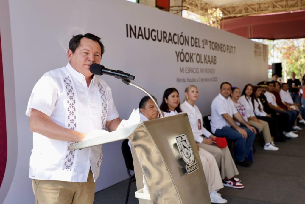 Compartir En el marco de la estrategia Aliados por la Vida, el Gobernador Joaquín Díaz Mena inauguró el primer Torneo de Fut 7 Yóok’ol Kaab en la Escuela Secundaria Técnica No. 59 “República de Ecuador”, un encuentro deportivo donde las y los jóvenes estudiantes y sus familias encontraron un espacio para la sana convivencia y la actividad física, alejándolos de conductas de riesgo como las adicciones y la delincuencia. Díaz Mena, acompañado de la presidenta honoraria del Sistema para el Desarrollo Integral de las Familias (DIF) Yucatán, la maestra Wendy Méndez Naal, dio la patada inicial de esta justa deportiva que, en maya, significa “Mi espacio, mi mundo”, la cual, por primera vez, se está realizando en dicho plantel ubicado en la colonia Emiliano Zapata, al sur de la ciudad de Mérida, pero que llegará a diversos centros educativos y comunidades, llevando deporte y actividades que promuevan la cohesión social. En su turno, el Gobernador señaló que el Torneo Yóok’ol Kaab es un espacio de encuentro, de sana competencia y de esperanza para nuestra juventud, ya que es mucho más que una competencia deportiva, sino un reflejo de lo que queremos construir en Yucatán; espacios deportivos, de cultura y arte que permitan una mejor comunidad. Destacó que la Estrategia Aliados por la Vida es un pilar fundamental de su gobierno, porque contribuye a alejar a los niños y adolescentes de las adicciones. En ese sentido, dijo que estará muy pendiente de las colonias del sur de Mérida. “Construiremos Centros de Renacimiento, que serán espacios donde niños y jóvenes podrán acudir a tomar clases de deporte y disciplina artística. Porque así difícilmente caerán en los caminos del alcoholismo y la drogadicción”, añadió el Gobernador. El titular del Ejecutivo estatal recordó a alumnos, madres y padres de familia que cuentan con su Gobierno y el de la Presidenta Claudia Sheinbaum Pardo para hacer de los niños y jóvenes personas sanas y felices, que tengan bienestar, estudien y salgan adelante. Al respecto, la directora del Centro de Prevención Social del Delito y Participación Ciudadana del Estado de Yucatán (CEPREDEY), Zayuri Valle Valencia, indicó que, en las siete semanas de duración de este Torneo, los participantes recibirán acompañamiento en educación en temas de salud mental, nutrición, conciencia corporal y prevención de adicciones.La funcionaria estatal dio a conocer que este Torneo no solo se limita al deporte, sino que también ofrecerá oportunidades a las y los deportistas del torneo para mejorar su escuela, como la intervención de las gradas del área de canchas con un mural creado por el alumnado. Entre las actividades que comprende también se encuentran el voluntariado y experiencias que amplíen sus horizontes, como el acceso a conciertos de la Orquesta Sinfónica de Yucatán, teatros y exposiciones de arte, entradas al cine del Siglo XXI y zonas arqueológicas, visitas guiadas al Museo Palacio Cantón y recorridos a empresas que han decidido sumarse a estos esfuerzos. Asistieron Luis Felipe Saidén Ojeda, Secretario de Seguridad Pública del Gobierno del Estado de Yucatán (SSP); Omar Pérez Avilés, Secretario General de Gobierno del Estado de Yucatán (SGG); la Senadora Verónica Camino Farjat, el diputado federal Óscar Brito Zapata; la legisladora local Clara Rosales Montiel; Patricia Martín Briceño, Secretaria de la Cultura y las Artes del Gobierno del Estado de Yucatán (SEDECULTA); Juan Balam Várguez, Secretario de Educación del Gobierno del Estado de Yucatán (SEGEY); Armín Lizama Córdoba, director general del Instituto del Deporte del Estado de Yucatán (IDEY); y Elena Campos Salas, directora de la Escuela Secundaria Número 59 “República de Ecuador”. Navegación de entradas Más de 400 computadoras para estudiantes de nivel medioDE JUNIO Bellas Artes Yucatán: 109 años formando talento artístico