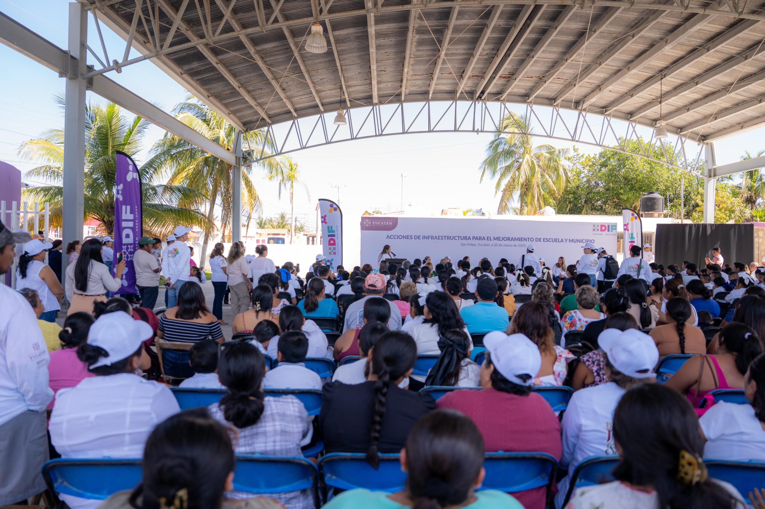 Compartir San Felipe, Yucatán – Con una inversión de 6.3 millones de pesos, el Sistema para el Desarrollo Integral de la Familia (DIF) Yucatán anunció importantes obras de infraestructura en el puerto de San Felipe. Estas acciones, enmarcadas en la iniciativa “Renacimiento Maya” del Gobernador Joaquín Díaz Mena, beneficiarán a estudiantes y la comunidad en general. Desde la Escuela Primaria “José María Morelos y Pavón”, la Presidenta Honoraria del DIF Yucatán, Mtra. Wendy Méndez Naal, detalló las obras de rehabilitación y construcción que mejorarán los espacios educativos y comunitarios. “Hoy regreso a esta escuela, mi escuela, con muchos sentimientos encontrados. Aquí estudié, aquí trabajé durante ocho años, y hoy tengo el honor de anunciar mejoras que cambiarán la experiencia educativa de muchas generaciones”, destacó Méndez Naal. Entre las obras anunciadas se encuentra la reconstrucción del domo del Jardín de Niños “Héroe de Nacozari”, que será modernizado para brindar sombra adecuada a los pequeños. Además, en la Escuela Secundaria Técnica No. 62 se construirá un nuevo domo que permitirá a los estudiantes realizar actividades deportivas y culturales protegidos del sol. En la Escuela Primaria “José María Morelos y Pavón” se edificará un comedor escolar en línea con la estrategia nacional “Vive saludable, vive feliz”, garantizando desayunos calientes y nutritivos para los alumnos. Asimismo, se realizará el mantenimiento del domo existente en la primaria para mejorar las condiciones de las instalaciones. Además de las mejoras educativas, se anunció la construcción de nuevos baños públicos en la zona de playa, con el objetivo de fortalecer la oferta turística y mejorar la experiencia de los visitantes. Durante su discurso, Méndez Naal enfatizó el compromiso del DIF Yucatán con la salud infantil mediante el programa “Vive saludable, vive feliz”. A través de esta iniciativa, se realizarán jornadas de salud en las escuelas para evaluar el estado físico de los estudiantes y proporcionar diagnósticos personalizados a las familias. “Estamos tocando puertas y trabajando de la mano con la Secretaría de Educación y el sector salud para garantizar que nuestras niñas y niños crezcan sanos, en espacios adecuados y con acceso a una alimentación saludable”, finalizó Méndez Naal. En el evento participaron diversas autoridades, entre ellas Shirley Edith Castillo Sánchez, Directora General del DIF Yucatán; Juan Enrique Balam Várguez, titular de la SEGEY; Lila Rosa Frías Castillo, titular de la SEPASY; el diputado Wilmer Monforte Marfil, y otras autoridades educativas y municipales. Navegación de entradas Yucatecos Reafirman su Confianza en la Policía con el Programa ‘Policía Cerca de Ti’ Yucatán y la Universidad de Texas A&M refuerzan colaboración en educación e innovación