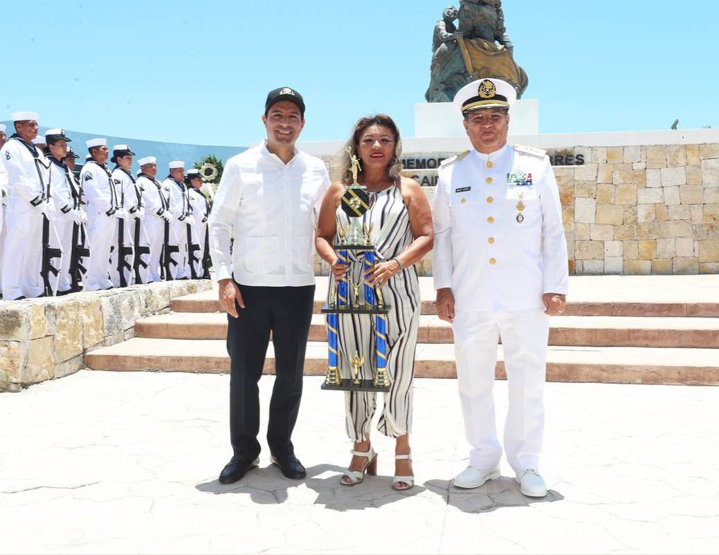 Compartir -En ese marco, Vila Dosal colocó una ofrenda floral en honor a los marinos caídos en el cumplimiento de su deber y entregó reconocimientos a personas destacadas de los ramos marítimo y portuario. Progreso, Yucatán, 1 de junio de 2023.- El Gobernador Mauricio Vila Dosal y el el comandante de la XIII Zona Naval, vicealmirante Gabriel Alberto Báez López, encabezaron la conmemoración por el Día de la Marina, en la que reconocieron la valiosa labor que realizan los hombres y las mujeres que, desde esta institución, salvaguardan los mares y las costas nacionales. En el puerto de Yucalpetén, Vila Dosal y Báez López colocaron una ofrenda floral en honor a los marinos caídos en el cumplimiento de su deber y refrendaron el compromiso de seguir trabajando en equipo, con tal de seguir sentando las bases de un futuro próspero para las familias de la entidad e impulsar el desarrollo local desde la costa. Asimismo, el Gobernador y el comandante de la XIII Zona Naval entregaron reconocimientos a Ana María Frías Salazar, por su trayectoria ejecutiva en esta institución, su reconocido liderazgo en el manejo sustentable de las pesquerías en México y poner en alto el nombre del sector. Con la presencia del alcalde de Progreso, Julián Zacarías Curi, el capitán Regional del Puerto de Progreso, Miguel Ángel Martínez Hernández y el director de la Administración del Sistema Portuario Nacional (Asipona) de Progreso, almirante en retiro Jorge Carlos Tobilla Rodríguez, se destacó la labor de Tomás Daniel Uicab Chalé, por sus 60 años de servicio, sorteando buenos y malos tiempos, y culminando su vida de pescador como un exitoso armador pesquero. En compañía del administrador de la Aduana de esta demarcación, Armando Caballero Vázquez, Vila Dosal y Báez López también distinguieron a Bernardo Mier y Terán, por su participación en el medio y apoyo a la logística de eficiencia portuaria, que mantiene elevado el nivel del rubro. Igualmente, otorgaron trofeos a los equipos ganadores en los juegos conmemorativos de esta efeméride: en básquetbol femenil, del Tecnológico de Progreso, las Guerreras, y en varonil, la XIII Zona Naval; en voleibol, de Productos Pesqueros; en fútbol, la Marina, y el campeón goleador, Jorge Rangel Tec. Tras agradecer la presencia de Vila Dosal, Báez López leyó el mensaje oficial del secretario de Marina, almirante José Rafael Ojeda Durán, en el que destacó la labor de las y los marinos mercantes, navieros turísticos, trabajadores de la industria, empresarios, pescadores, ambientalistas, petroleros, navales e investigadores, que defienden el valor de los mares y lo mucho que representan para la nación. “Juntos, trabajamos para convertir a México en un país más justo, igualitario, equitativo, solidario y sustentable; juntos, emprendemos la transformación de nuestros mares en una plataforma logística a nivel mundial, en una nueva ruta para el comercio internacional”, afirmó. Se contó con la presencia del representante de la X Región Militar, Horacio Flores Fonseca; la titular de la Secretaría General de Gobierno (SGG), María Fritz Sierra; el de la Fiscalía General (FGE), Juan Manuel León León; la presidenta del Tribunal Superior de Justicia, María Carolina Silvestre Canto Valdés; el alcalde anfitrión, Julián Zacarías Curi, y los diputados locales, Víctor Hugo Lozano Poveda y Erik Rihani González. Navegación de entradas El Gobernador Mauricio Vila Dosal sigue impulsando el aprendizaje de las nuevas tecnologías en escuelas públicas de Yucatán El Gobernador Mauricio Vila Dosal presentó los proyectos estratégicos que se realizan en conjunto con la Federación, en materia de infraestructura portuaria, educativa, energética, hospitalaria y de transporte público.