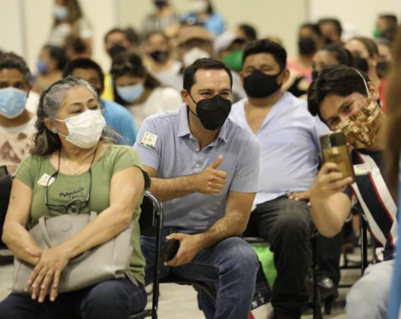 Compartir – Vila Dosal acudió esta tarde a recibir su segunda aplicación de la vacuna Pfizer al macrocentro instalado en el Centro de Convenciones Yucatán Siglo XXI.Mérida, Yucatán, 16 de agosto de 2021.- El Gobernador Mauricio Vila Dosal recibió este día su segunda dosis contra el Coronavirus, como parte de las más de 1.7 millones de vacunas, entre primeras y segundas dosis, que se han administrado a los yucatecos.Minutos después del mediodía, el Gobernador arribó al macrocentro de vacunación instalado en el Centro de Convenciones Yucatán Siglo XXI, donde se están aplicando segundas dosis de la farmacéutica Pfizer a aquellas personas de Mérida que se encuentran rezagadas y que por algún motivo no habían podido recibirla, proceso que transcurre en orden y sin contratiempos.Cabe señalar que Vila Dosal recibió su primera dosis contra el Coronavirus el pasado 23 de junio, por lo que el 4 de agosto, como le correspondía, acudió al módulo del Hospital Militar Regional de Especialidades donde se estuvieron aplicando segundas dosis de Pfizer y Sinovac a personas que viven en Mérida, sin embargo, dada la importante participación de los ciudadanos, las vacunas Pfizer se agotaron y no alcanzó turno, por lo que informó esperaría la siguiente jornada para vacunarse, que es la que se está desarrollando hoy 16 y mañana 17 de agosto.Después de realizar la fila y registrarse junto con los ciudadanos que también se dieron cita esta tarde, el Gobernador recibió la segunda aplicación de la enfermera Selene Rebollo Salinas para después pasar al área de recuperación, donde permaneció por 15 minutos para después retirarse.La enfermera de 31 años destacó que le causó una muy buena impresión Vila Dosal, quien a pesar de ser el Gobernador del estado, llegó e hizo el proceso como todos los ciudadanos que acuden a vacunarse.El Gobernador siguió el mismo proceso como el resto de los asistentes. Pasó como parte de las 6 personas del grupo que normalmente atendemos, se le preguntó la edad, le expliqué las reacciones que podrían surgir y luego se procedió a aplicarle la vacuna para que después el Gobernador permaneciera en observación, explicó la profesional de la salud.En ese marco, el Gobernador reiteró la importancia de continuar siguiendo las medidas sanitarias, como el uso del cubrebocas, el lavado constante de manos y la sana distancia, ya que la vacuna no evita que te contagies o contagies a más personas, sino que al enfermarte no sea de gravedad ni se requiera hospitalización.De igual manera, reiteró su invitación de acudir a vacunarse sin temor y a hacerlo en el día y módulo que les corresponde. Navegación de entradas Menor de 13 años, entre los muertos por Covid de este sábado en Yucatán Industria yucateca registra repunte de ganancias y trabajos