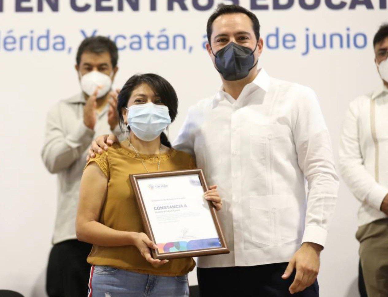 Compartir -Un total de 399 trabajadoras y trabajadores con hasta 12 años de antigüedad recibió sus bases, como reconocimiento a su esfuerzo y compromiso. -Ofreciendo justicia laboral al personal que por tantos años ha esperado esta oportunidad, Vila Dosal les entregó sus órdenes de adscripción y formatos únicos. Mérida, Yucatán, 27 de junio de 2022.- En un acto de justicia laboral, como reconocimiento al esfuerzo y la dedicación del personal de apoyo o asistencia a la educación, que por hasta 12 años, ha brindado sus servicios en planteles de nivel básico bajo contrato, el Gobernador Mauricio Vila Dosal entregó 399 plazas, con lo que se les brinda mayor certeza, estabilidad y mejores condiciones, a ellos y sus familias. Con el titular de la Secretaría de Educación del Estado (Segey), Liborio Vidal Aguilar, el Gobernador encabezó la distribución de órdenes de adscripción y formatos únicos, a 399 empleadas y empleados que realizan funciones administrativas o técnico-manuales, y han esperado este momento por tantos años. Ana Margarita Quintal Ortiz es una de las yucatecas que este día recibieron su plaza, después de arriba de 10 años de servicio; muy emocionada, agradeció al Gobernador, pues lo consideraba justo y necesario, luego de que, todo ese tiempo, ha puesto mucho esfuerzo en los centros formativos donde ha laborado. La mujer, originaria de Muna, labora en el área de intendencia en una escuela de Corral, comisaría de Tzucacab, y cada fin de semana, debe viajar por 4 horas para regresar a su hogar; por ello, recibir su base representa una gran recompensa para todo el empeño que ha puesto, por más de una década. “No solo lo agradezco yo sino también mi familia, que también ha tenido que hacer sacrificios por mi trabajo; por eso, agradezco al Gobernador y el secretario de Educación, porque estas bases están llegando a las personas que de verdad lo merecen”, afirmó emocionada. Desde el Centro de Convenciones “Siglo XXI», Vila Dosal destacó los esfuerzos del personal del ramo, durante el año y 7 meses que operaron desde casa, y afirmó que Yucatán está saliendo adelante, gracias al trabajo en equipo de todos sus habitantes. Señaló igual que tener una base da tranquilidad y certidumbre, pero también es un compromiso, que llamó a las y los recipiendarios a asumir, por las nuevas generaciones y la entidad. “Les reconocemos y agradecemos su esfuerzo todos estos años, vamos a seguir trabajando y haciendo bien las cosas”, dijo. Ante líderes sindicales del sector, el Gobernador invitó a, juntos, continuar haciendo los cambios que sean necesarios para que podamos dejar un Yucatán mejor al que recibió su administración, por lo que externó que “el llamado es a seguir transformando el estado y redoblar esfuerzos en la coordinación”. Finalmente, indicó que, pese a que los yucatecos vivimos los 2 años más difíciles en nuestra historia, el territorio se está recuperando, lo que puede ser comprobado con los positivos indicadores en economía, seguridad y la llegada de cada vez más inversiones, que generan empleos para las familias locales. Vidal Aguilar destacó que esta entrega de plazas es un acto de justicia, pues beneficia a 399 personas que han mostrado, por años, su empeño y compromiso. Agregó que esta administración, desde el inicio, sobresale por ser transparente, innovadora y actuar de cara a la gente, sin miramientos ni excepciones, principios que la han hecho, junto con el estado, referente nacional de mejores prácticas. Como ha instruido el Gobernador, estamos privilegiando el esfuerzo y la dedicación por encima de los intereses políticos, porque estamos convencidos de que sólo con coordinación, voluntad y trabajo, podemos lograr una educación de calidad; la labor que ustedes realizan es indispensable para la juventud de nuestra tierra y, en el Gobierno del Estado, siempre encontrarán puertas abiertas, aseguró. Quienes recibieron sus bases acreditaron haber trabajado durante determinado número de años ininterrumpidos, bajo contrato activo, con el perfil requerido, y ahora ven mejorar sus condiciones laborales. Para ello, se consideró vacantes definitivas por jubilación, defunción, pensión o renuncias voluntarias; del total de plazas entregadas, 181 son estatales y 218, federales. Actualmente, existen 1,993 personas activas de contrato, de las cuales se benefició con este movimiento a 399, pertenecientes a 18 categorías: administrativo especializado, auxiliar de administrador, secretaria de apoyo, prefecto de apoyo, A y B foráneo, médico, oficial de servicios y mantenimiento, asistente de servicios en plantel, servicios y mantenimiento en plantel, asistente de cocinera, técnico medio, bibliotecario, enfermera especializada, puericultor, niñera especializada y trabajadora social. Estuvieron, por parte del Sindicato Nacional de Trabajadores de la Educación (SNTE), Francisco González Mena; los secretarios Generales de las Secciones 57, Alejandro Chulim Cimé, y 33, Ricardo Francisco Espinosa Magaña, así como los representantes de los Comités Ejecutivos Nacionales de la 57, Demetrio Rivas Corona, y la 33, José Guadalupe Castillo García. También, las y los secretarios Generales de los Sindicatos Yucateco de Trabajadores Transferidos de la Educación (Sytte), Yolanda del Socorro Góngora Sosa; de Trabajadores de la Educación de Yucatán (Setey), José Luis Flota Pech; Independiente de Trabajadores de la Educación en México (Sitem), Elvira Caamal Vázquez, y el Gremio Nacional de Trabajadores de la Educación (GNTE), Gabriela Moreno Islas. Navegación de entradas Yucatán inicia la vacunación contra el Coronavirus para niñas y niños de 5 a 11 años de edad Siete playas yucatecas reciben certificación Platino por segundo año consecutivo