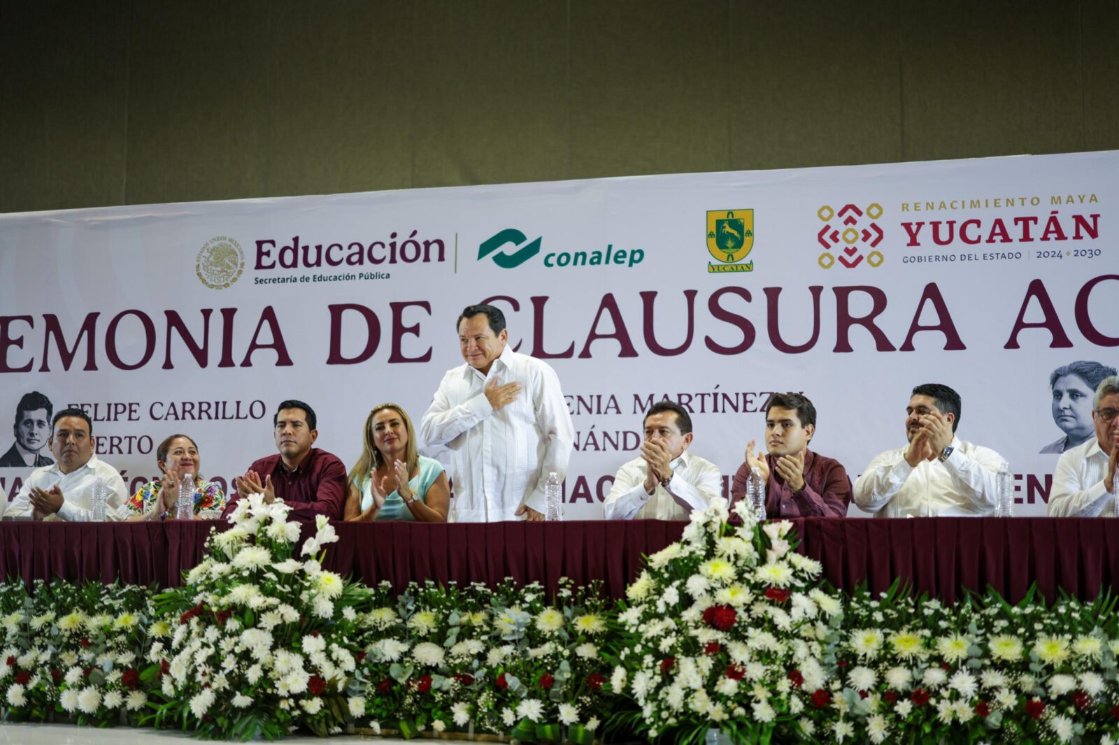 Compartir Mérida, Yucatán, 10 de julio de 2025. En un acto lleno de emoción, más de mil 500 estudiantes del Conalep Yucatán culminaron su formación como parte de la generación 2022–2025. El evento se llevó a cabo en el Centro de Convenciones Yucatán Siglo XXI, encabezado por el Gobernador del Estado, Joaquín Díaz Mena, quien destacó el esfuerzo de los egresados y anunció nuevas oportunidades educativas. Durante la ceremonia, Díaz Mena dio a conocer que en septiembre arrancará el programa estatal de Becas Universitarias Juventudes Renacimiento, con el que se brindará apoyo económico desde el primer año a jóvenes que ingresen a la universidad. Este anuncio fue recibido con entusiasmo por los asistentes, especialmente al saber que la iniciativa forma parte de un esfuerzo por ampliar el acceso a la educación superior. Asimismo, el mandatario informó que se construirán dos nuevas universidades públicas: la Universidad Rosario Castellanos en Progreso y la Universidad del Mar en Kanasín, pensadas para ofrecer opciones adicionales a quienes no logren ingresar a otras instituciones. “Yo también llegué a Mérida con sueños por cumplir. La clave está en esforzarse más que el promedio, nunca dejar de aprender y luchar por lo que parece imposible”, compartió Díaz Mena ante los egresados y sus familias. El director general del Conalep Yucatán, Felipe Duarte Ramírez, subrayó que el alumnado no solo egresa con su certificado de bachillerato, sino también con título y cédula profesional, lo que coloca al subsistema como referente nacional en formación técnica de calidad. La generación 2022–2025 fue reconocida como una muestra del compromiso, esfuerzo y trabajo en equipo entre estudiantes, familias y personal docente. La ceremonia concluyó con un mensaje de aliento, invitando a las y los egresados a construir su futuro con orgullo, determinación y vocación de servicio. Navegación de entradas Entregan apoyos funcionales para personas con discapacidad en Yucatán “Jáalk’ab”: Nuevo programa en Yucatán promueve la independencia de personas con discapacidad