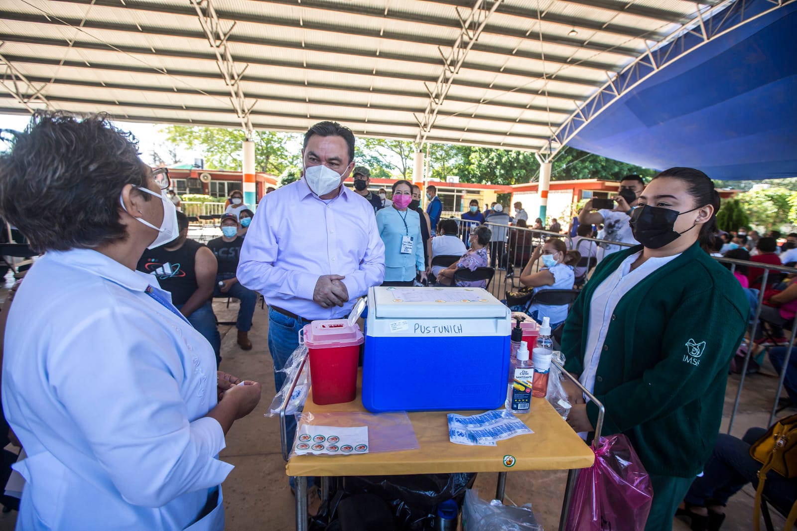 Compartir -El tiempo del proceso de inoculación, desde el ingreso hasta la salida, es de 20 minutos. Mérida, Yucatán, 13 de enero de 2022.- Alta participación se registró en el segundo día de la aplicación de la vacuna de refuerzo contra el Coronavirus Moderna a maestras, maestros y personal educativo activo de escuelas públicas y privadas de Yucatán, que, como producto de las gestiones del Gobernador Mauricio Vila Dosal ante la Federación, en los primeros dos días se ha logrado la vacunación de 14 mil 938 de un total de 25 mil 732 trabajadores de este sector. En Mérida, hoy se aplicaron 11 mil 32 vacunas en el Centro de Convenciones Yucatán Siglo XXI; en la Escuela Secundaria Felipe Carrillo Puerto, sede de Ticul aplicaron dos mil 2 vacunas; en el Tecnológico Nacional de Tizimín fueron 840 y en la Universidad Modelo de Valladolid, mil 64 personas. Desde el miércoles 12 y hasta el próximo sábado 15 de enero se aplicará la vacuna Moderna, de laboratorios estadounidenses, para evitar la propagación del Coronavirus. El proceso para inocular al personal del sector educativo es de 20 minutos, desde su ingreso, registro, aplicación y recuperación, tras la cual se retira la persona, con atención del personal de la Secretaría de Educación, de Salud y de la Secretaría de Investigación, Innovación y Educación Superior (SIIES). El secretario de Educación, Liborio Vidal Aguilar, destacó la valiosa participación de quienes forman parte de la logística, así como del personal educativo que ha respondido de forma activa a la convocatoria del Gobierno del Estado, a través de la Segey. En ese sentido, Vidal Aguilar destacó que la aplicación de la vacuna de refuerzo contra este virus, es resultado de las gestiones del Gobernador Vila Dosal para atender la petición de este sector para contar con mayor protección. El funcionario estatal recordó que el próximo lunes 17 de enero, será el regreso presencial a clases de forma híbrida y voluntaria, es decir, es decisión de las madres, padres y tutores enviar a los estudiantes a las escuelas u optar por las opciones de la modalidad no presencial. El titular de la Segey realizó una visita de supervisión al módulo de vacunación habilitado en Ticul. Navegación de entradas Juntos estamos combatiendo la violencia contra las mujeres como nunca antes Yucatán albergará Copa Internacional de fútbol para niñas, niños y jóvenes