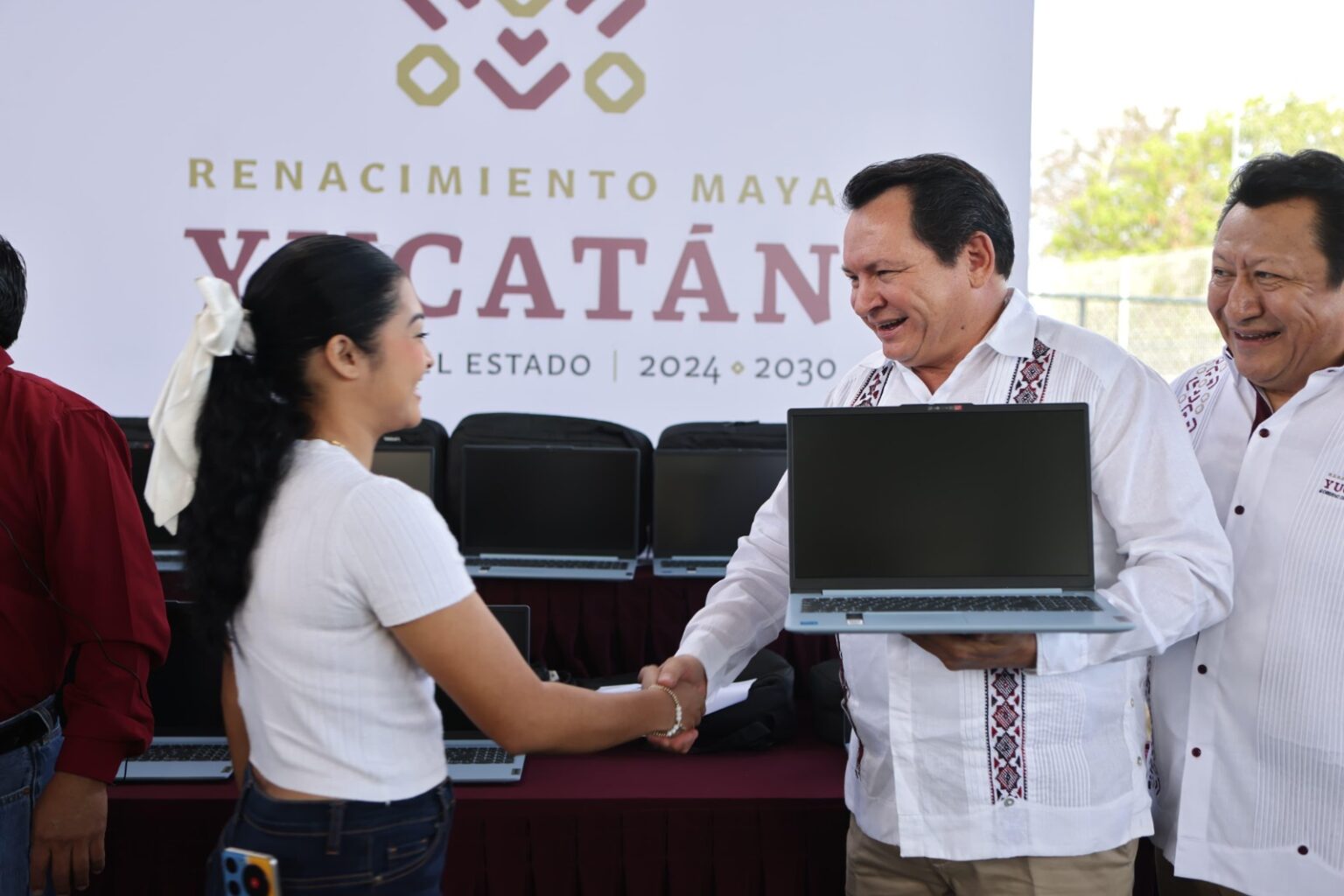 Compartir Como parte de los esfuerzos para fortalecer la cultura digital en los centros de educación de nivel medio superior, el Gobernador Joaquín Díaz Mena entregó más de 400 equipos de cómputo a preparatorias estatales de Yucatán, con el fin de que cuenten con las herramientas necesarias para brindar una enseñanza de calidad e igualdad de oportunidades a las y los jóvenes yucatecos. En la Preparatoria Estatal Número 10 “Rubén H. Rodríguez Moguel”, localizada en Ciudad Caucel, el mandatario estatal distribuyó laptops a los 13 planteles pertenecientes al Gobierno del Estado, con el objetivo de que las y los estudiantes puedan acceder a recursos educativos adecuados para desarrollar habilidades digitales. La entrega de estas laptops representa una inversión de 5.7 millones de pesos en favor de la educación de las nuevas generaciones. Además, cabe mencionar que estos equipos están equipados con las herramientas y estrategias tecnológicas necesarias para su uso en las aulas. Al dirigir su mensaje, el titular del Ejecutivo estatal destacó que estas herramientas de trabajo representan oportunidades para garantizar a la juventud el acceso a una mejor educación y, con ello, abrirse más puertas en la vida. Por ello, invitó a cuidarlas y darles un buen uso. Díaz Mena apuntó que este es un paso para consolidar una mejor educación y aseguró que los esfuerzos no se quedarán ahí, ya que su administración tiene el compromiso de capacitar a los maestros, ampliar la infraestructura tecnológica y garantizar que los equipos funcionen para beneficio de los estudiantes. En ese marco, el Gobernador agradeció el apoyo que la Presidenta Claudia Sheinbaum brinda a Yucatán y su gente, especialmente a través de obras importantes como la modernización de Puerto Progreso, el fortalecimiento del Tren Maya y acciones de vivienda. Por otro lado, el mandatario estatal recordó que su gobierno impulsa la estrategia Aliados por la Vida, donde los protagonistas son los jóvenes yucatecos y se busca promover en ellos una vida sana, con estudios y acceso a la cultura y el deporte, para evitar que caigan en adicciones y la delincuencia. En su turno, el titular de la Secretaría de Educación del Estado (Segey), Juan Balam Várguez, señaló que esta entrega representa una oportunidad para que los jóvenes construyan proyectos de vida enfocados en lo de hoy: las tecnologías. Asistieron al evento el director de la Preparatoria Estatal Número 10 “Rubén H. Rodríguez Moguel”, Arnold Pacheco Ceballos; Fryda Valentina Notario Martínez, alumna del plantel anfitrión; el subsecretario de Educación Media Superior, Miguel Ángel Pech Estrella, así como los directores de los planteles estatales. Navegación de entradas “Aquí no hay puertas cerradas que frenen el diálogo entre la ciudadanía y su gobierno”: Joaquín Díaz Mena Díaz Mena impulsa deporte con Torneo Yóok’ol Kaab