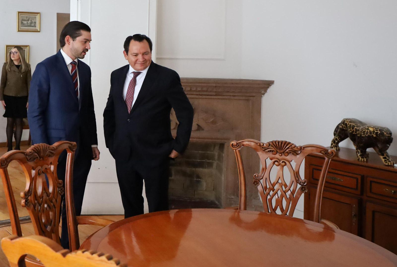 Compartir -En encuentro con el titular de la Secretaría de Marina, Almirante Raymundo Pedro Morales Ángeles, se destacó la importancia de seguir estrechando la colaboración entre los ámbitos federal y estatal para concretar proyectos como la ampliación del Puerto de Altura de Progreso. Ciudad de México, 17 de octubre de 2024.- En el marco de la gira de trabajo por la Ciudad de México, el Gobernador Joaquín Díaz Mena se reunió con el Secretario de Marina del Gobierno Federal, Almirante Raymundo Pedro Morales Ángeles, a quien expuso los principales proyectos estratégicos que buscan fortalecer la infraestructura y competitividad del estado, como el relativo a la ampliación del Puerto de Altura de Progreso, que es una de las iniciativas clave del plan Renacimiento Maya. Dicho proyecto tiene como objetivo consolidar a Yucatán como un polo de desarrollo económico en el sureste mexicano y no solo mejorará la capacidad logística y portuaria de la entidad, sino que también permitirá impulsar el comercio internacional, generar empleos y promover el crecimiento de diversas industrias locales. En el encuentro se destacó la importancia de seguir estrechando la colaboración entre el gobierno estatal y las instancias federales, como la Secretaría de Marina, para asegurar que los proyectos de esta envergadura se lleven a cabo con eficiencia y bajo los más altos estándares de seguridad. Díaz Mena señaló que la ampliación del puerto es un paso fundamental para conectar a Yucatán con nuevos mercados globales y posicionarlo como un referente en la región, destacando que la reunión refleja el compromiso del gobierno de la entidad de continuar fortaleciendo la infraestructura estratégica del estado, en estrecha colaboración con las autoridades federales, para favorecer el desarrollo y bienestar de las familias yucatecas. Por su parte, el Secretario Morales Ángeles reiteró el compromiso de la Secretaría de Marina de coadyuvar con las autoridades estatales para garantizar el éxito de este proyecto, y reconoció el potencial que tiene nuestra Entidad para ser un motor de desarrollo económico y comercial a nivel nacional e internacional. En el marco de la gira de trabajo por la capital del país, el Gobernador realizó también una visita a la sede de la representación del Gobierno del Estado de Yucatán en la Ciudad de México, donde fue recibido por su titular, Víctor López Martínez, quien manifestó su compromiso de seguir impulsando las actividades de dicha oficina, consolidándola como un espacio de referencia para la promoción de las oportunidades económicas, turísticas y culturales de Yucatán en la Ciudad de México. El Gobernador Díaz Mena destacó la importancia de la representación como puente para fortalecer los lazos entre el gobierno de Yucatán, instituciones del gobierno federal, sector empresarial, y la comunidad yucateca residente en la Ciudad de México. «La Representación de Yucatán en la Ciudad de México no solo es la extensión de nuestro Gobierno en el centro del país, sino un espacio clave para generar alianzas estratégicas y promover nuestra identidad yucateca. Queremos que cada yucateco que visite esta oficina sienta el respaldo y apoyo del Gobierno de Yucatán», concluyó. Navegación de entradas Huacho’ Díaz gestiona apoyos para impulsar la economía y la educación en Yucatán Es invaluable la contribución de las mujeres rurales en el desarrollo de Mérida y sus comisarías, reconoce Cecilia Patrón