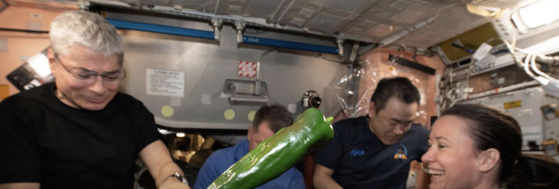 Los astronautas de la NASA en la Estación Espacial Internacional han conseguido en los últimos días cosechar chiles. El experimento Plant Habitat-04 (PH-04), que comenzó en julio, ha resultado en la producción de algunos pimientos de chile Hatch, originario de Nuevo México. Las semillas viajaron al espacio a bordo de la nave número 22 de Space X durante el verano y fueron cuidadosamente tratadas en el laboratorio abordo de la Estación. La intención de este ejercicio es resolver el desafío de la alimentación de los astronautas en órbita, principalmente, de cara a las misiones espaciales Artemisa -con destino a la Luna- y las programadas a Marte en las próximas décadas.